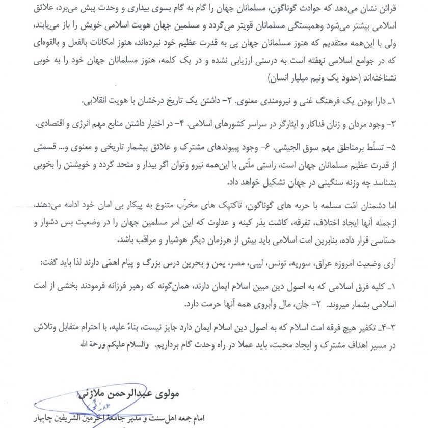 3-4- تکفیر هیچ فرقه امت اسلام که به اصول دین اسلام ایمان دارد جایز نیست، بناءً علیه، با احترام متقابل وتلاش در مسیر اهداف مشترک وایجاد محبت، باید عملا در راه وحدت گام برداریم . والسلام علیکم ورحمة الله