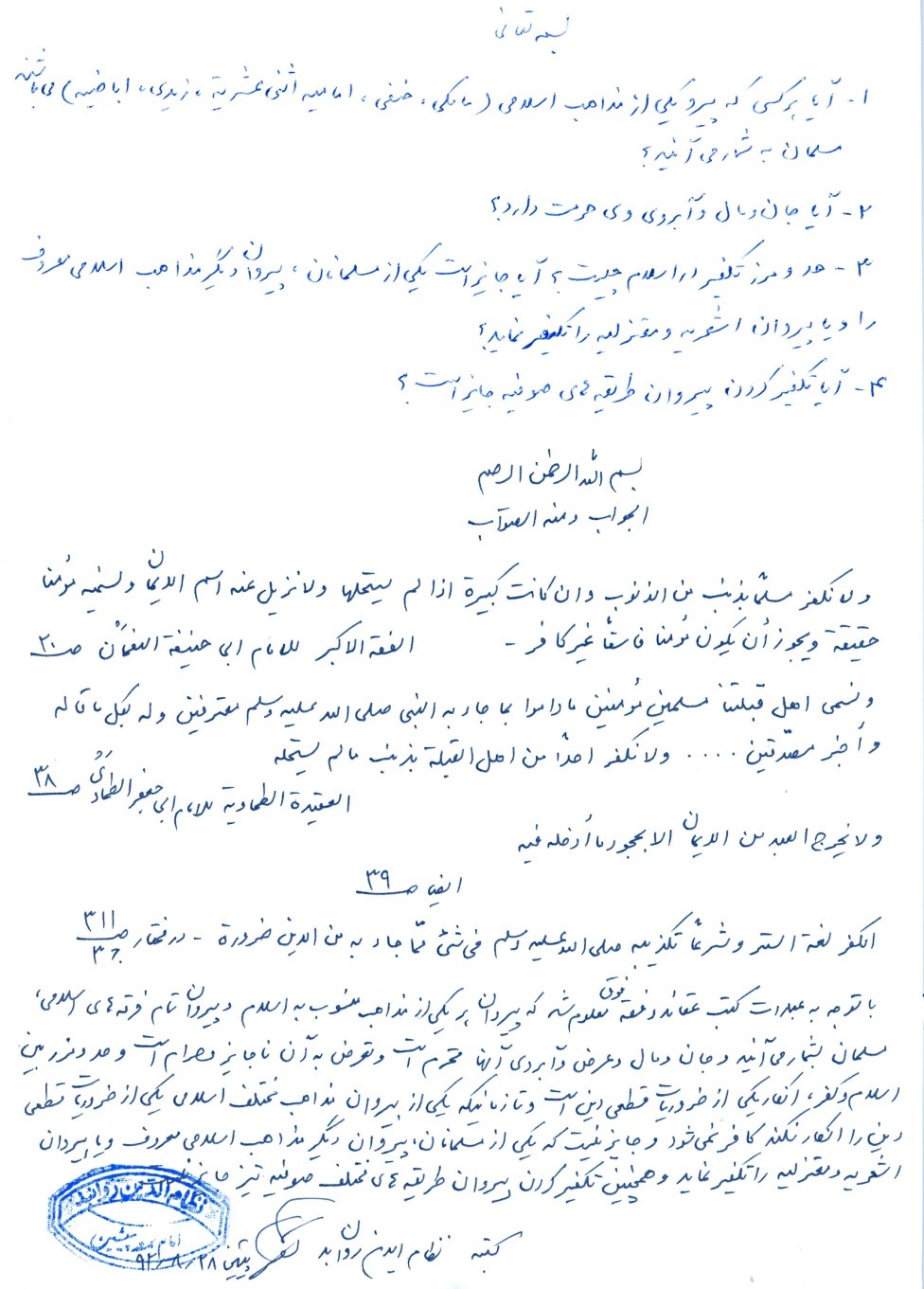 - آیا کسی که پیرو یکی از مذاهب اسلامی (مالکی، حنفی، امامیه اثنی عشریة، زیدی، اباضیه) می باشند مسلمان به شمار می آیند؟